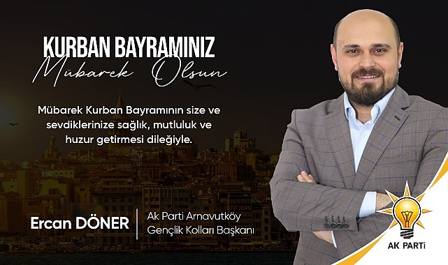 Ak Parti Arnavutköy Gençlik Kolları Başkanı Ercan DÖNER Bayram Mesajı Yayınladı Mesajında Şu Sözlere Yer Verdi "Bütün İslam aleminin Kurban Bayramı'nı kutlar, bu mübarek Bayramın tüm insanlığa barış, huzur ve hoşgörü getirmesini temenni ederim."