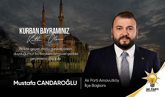 AK PARTİ ARNAVUTKÖY İLÇE BAŞKANI MUSTAFA CANDAROĞLU Kurban Bayramı mesajında, "Kurban Bayramı'nız kutlu, yüreğiniz umutlu, umutlarınız atlı, sevdanız kanatlı, mutluluğunuz katlı, sofranız tatlı, mekânınız tahtlı, ömrünüz bahtlı, yuvanız bereketli olsun" ifadelerini kullandı.