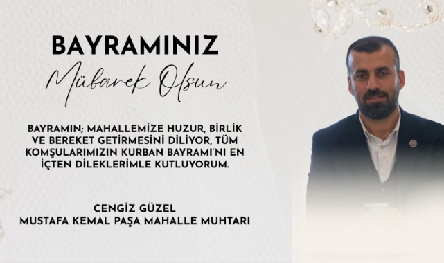 Mustafa Kemalpaşa Mahalle Muhtarı Cengiz Güzel, kurban bayramı vesilesiyle bir mesaj yayınladı.