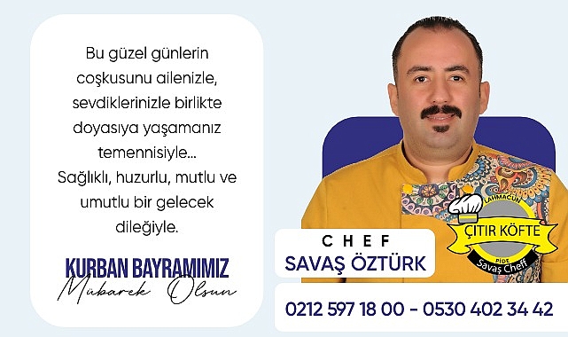 CHEF SAVAŞ ÖZTÜRK Kurban Bayramı mesajında, "En güzel bayramların en güzel anıları sadece bugün değil her gün size güzel bir anı olsun.Kurban Bayramınız Mübarek Olsun." ifadelerini kullandı.