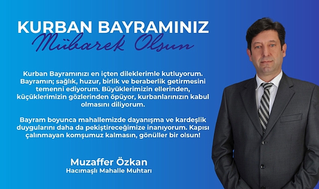 Hacımaşlı Mahalle Muhtarı Muzaffer Özkan Kurban Bayramı vesilesiyle bir mesaj yayınladı.