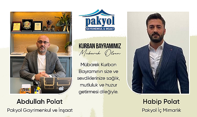 Pakyol Gayrimenkul İnşaat ve Mimarlık ofisi yöneticileri Abdullah Polat ve Habip Polat Kurban Bayramı dolayısıyla bir mesaj yayınladı.