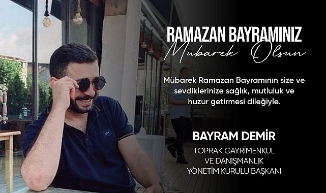 ARNAVUTKÖY'DE HİZMET VEREN TOPRAK GAYRİMENKUL VE DANIŞMANLIK YÖNETİM KURULU BAŞKANI BAYRAM DEMİR RAMAZAN BAYRAMI NEDENİYLE BİR MESAJ YAYINLADI. DEMİR MESAJINDA, "Mübarek Ramazan Bayramı'nın size ve sevdiklerinize sağlık, mutluluk ve huzur getirmesi dileğiyle." İFADELERİNİ KULLANDI.
